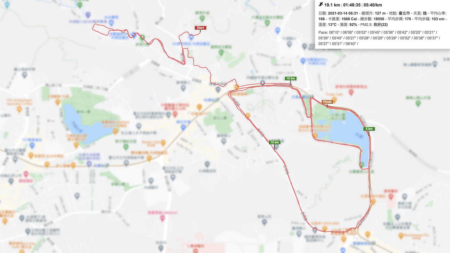 實測二:19km 長距離跑(圖片來源:osaru)