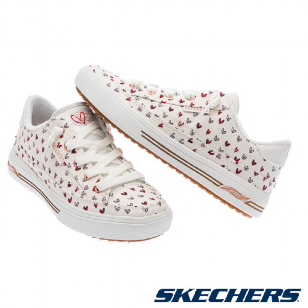 ARCH FIT ARCADE系列,套入款經典休閒鞋。深受年輕人喜愛的國際知名街頭藝術家 James Goldcrown,因其經典代表作彩色愛心塗鴉 Lovewall 而聞名享譽全世界。這次在 Skechers X JGoldcrown 合作中將其標誌性的#Lovewall心形設計帶入鞋款,推出色彩繽紛、個性前衛的聯名鞋款。