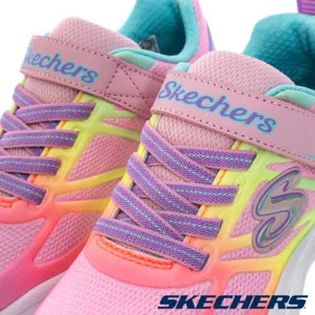 POWER JAMS系列,亮色系的夢幻外型,穿上它,讓您的寶貝活潑動人閃閃發光。 1.輕量避震緩衝中底,舒適好穿,減少對足部的衝擊力。 2.靈活牽引大底,靈活寶貝們的每一步。 3.透氣運動網布鞋面,搭配珍珠光澤彩虹模壓造型,夢幻無比,搭配多彩鞋帶,也增添鞋面層次感。 4.一片式魔鬼氈設計搭配彈性鬆緊帶,穿脫容易,合腳無負擔。 5.後跟快穿拉環,方便穿脫。
