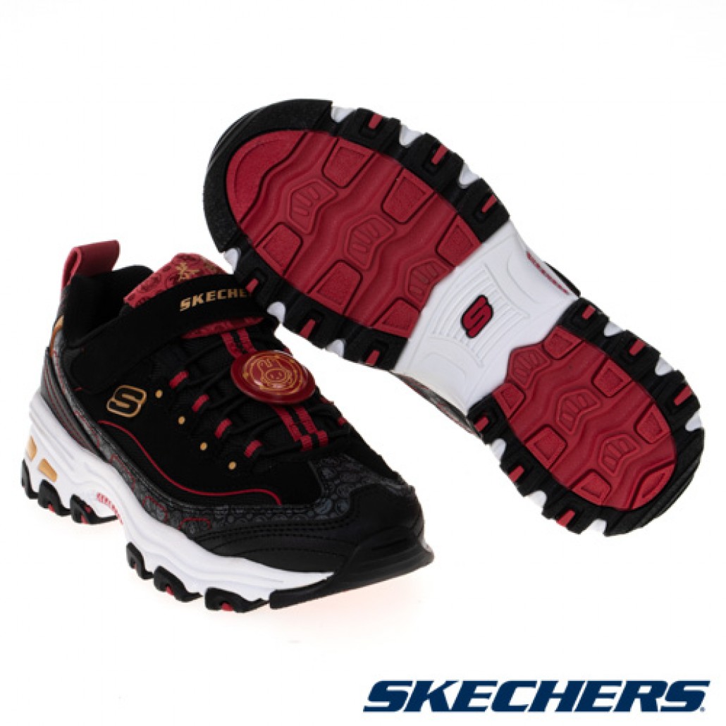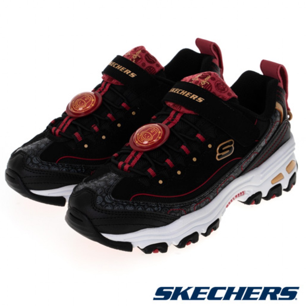 SKECHERS D'LITES系列時尚老爹鞋 - 2023年GO兔新春限定款,異材質拼接鞋面以紅色線條展現新春氣息,皮革區塊則以 2023、智慧之兔、福…等節慶圖騰點綴,展現兔年的主題感,鞋帶處以可愛的智慧之兔立體圖章裝飾,搭配鞋舌上的「恭喜發財」與後腳跟皮面織帶上的「兔飛猛進」字樣,祝您在2023年心想事成,大展鴻兔!