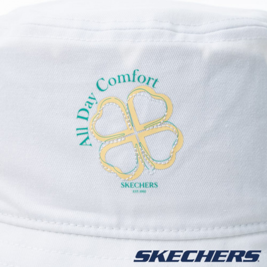 SKECHERS 漁夫帽,搭配幸運草框邊繡線設計,簡約百搭。 1. 寬帽簷設計。 2.幸運草框邊繡線設計,簡約百搭。