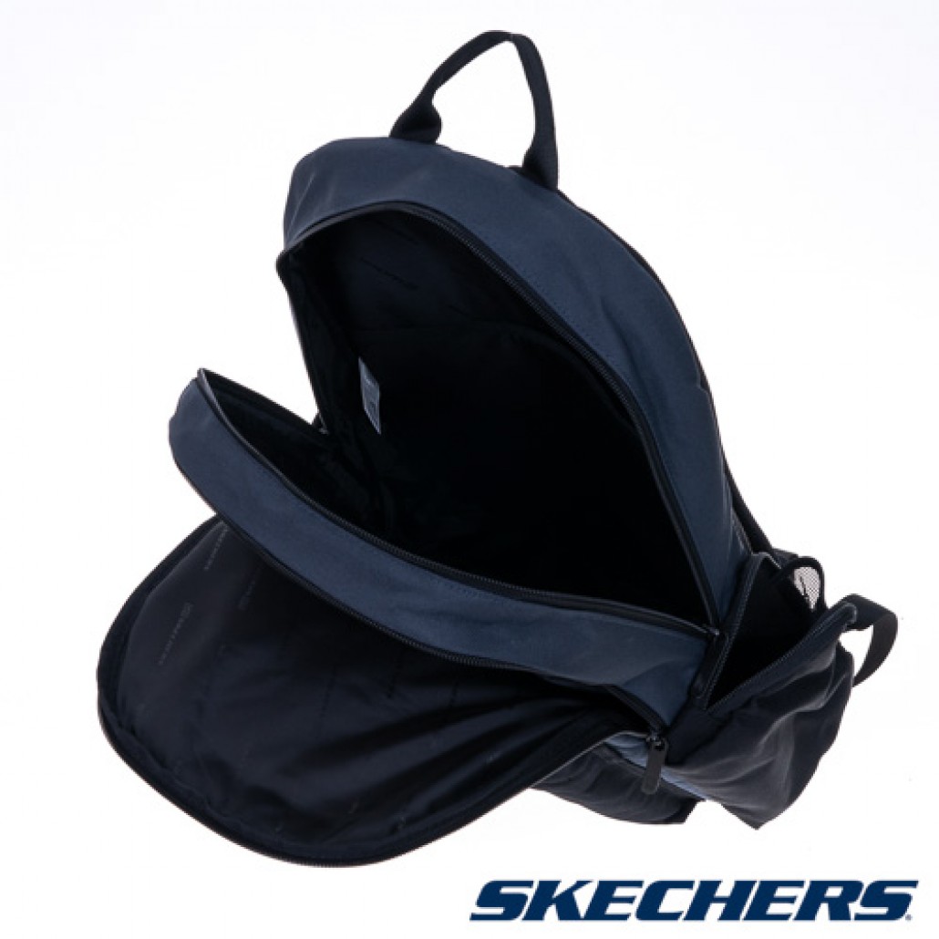 SKECHERS雙層後背包,雙拉鍊頭設計,大容量收納空間,適合日常休閒使用。 1. 雙拉鍊頭設計,大容量收納空間,可容納A4紙張。 2. 多功能隔層收納空間,袋前連蓋式拉鍊口袋,兩側拉鏈收納袋以及袋內的隔層口袋,可以將物品分門別類放置,方便拿取。 3. 避震背墊,舒適透氣。可調整襯墊背帶,將重量均勻分布肩頸跟背部。