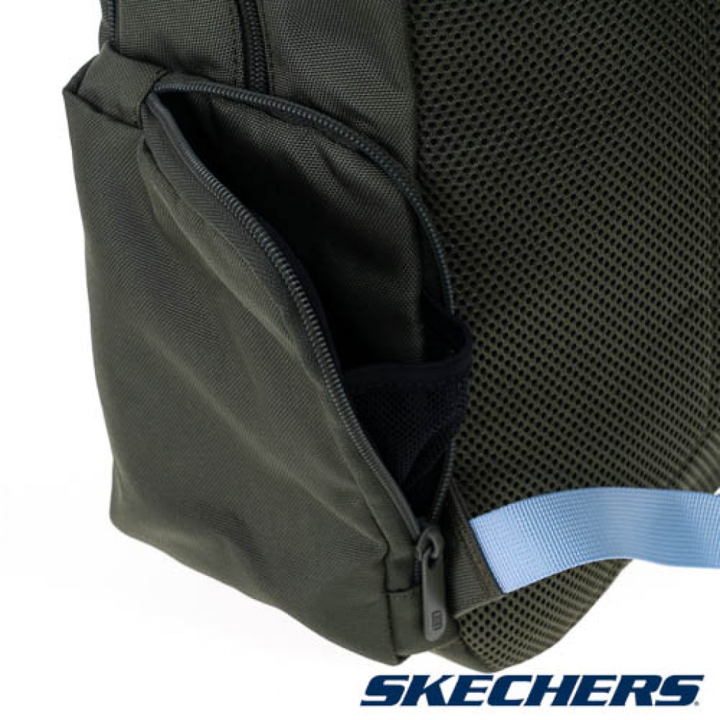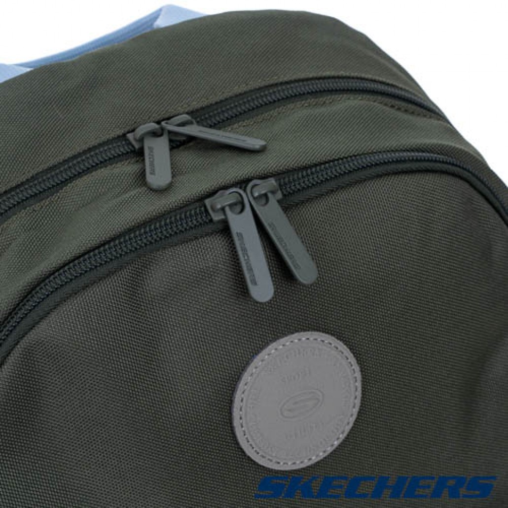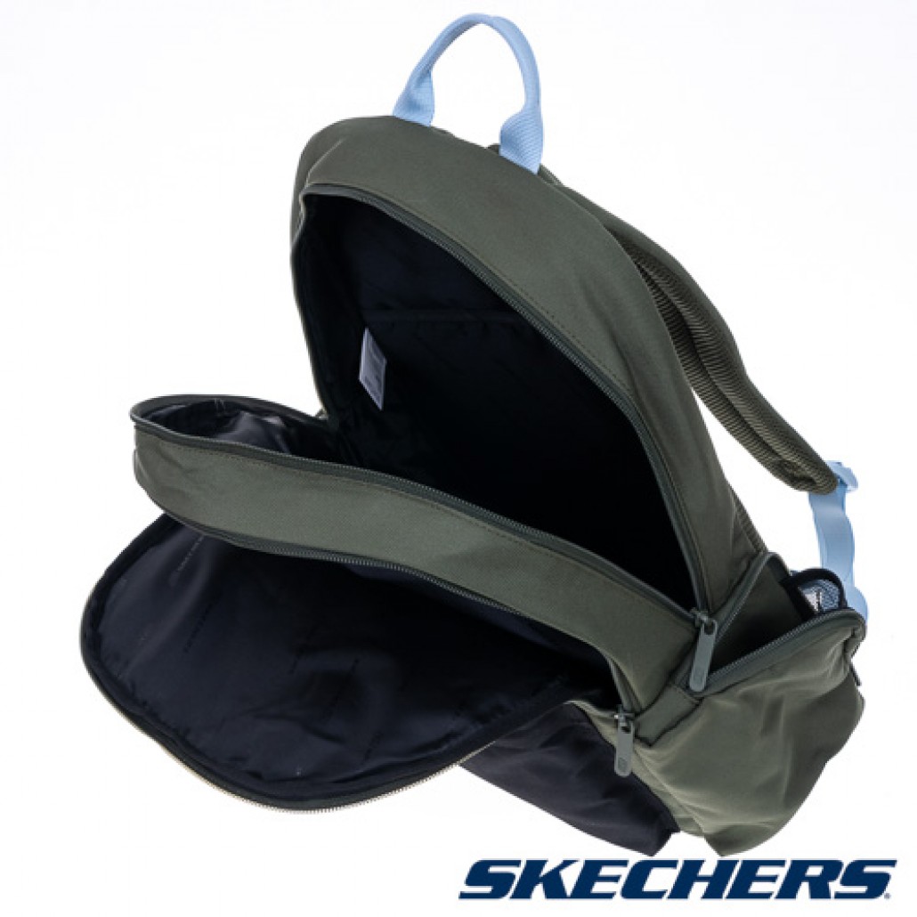 SKECHERS雙層後背包,雙拉鍊頭設計,大容量收納空間,適合日常休閒使用。 1. 雙拉鍊頭設計,大容量收納空間,可容納A4紙張。 2. 多功能隔層收納空間,袋前連蓋式拉鍊口袋,兩側拉鏈收納袋以及袋內的隔層口袋,可以將物品分門別類放置,方便拿取。 3. 避震背墊,舒適透氣。可調整襯墊背帶,將重量均勻分布肩頸跟背部。