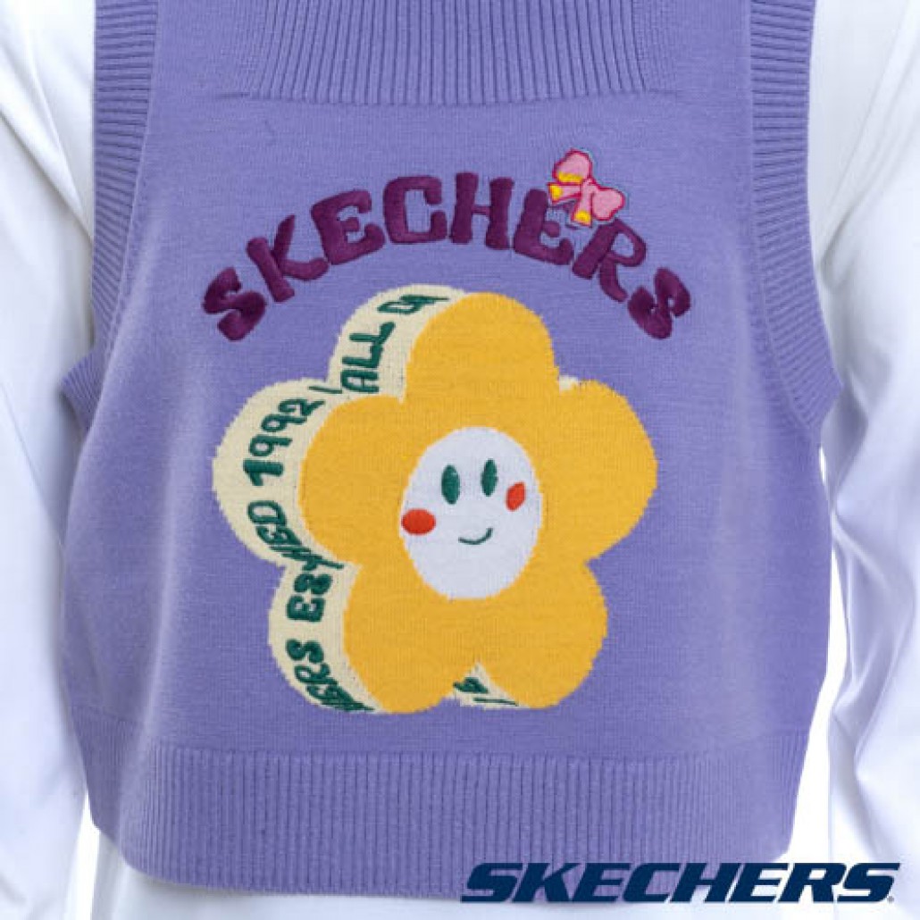 SKECHERS為您精心挑選優質童裝短袖衣,享有自在舒適的穿著體驗。 1.精細的織造工藝和設計細節,舒適柔軟的針織材質。 2.胸前提花工藝的Skechers字母組合可愛的笑臉,增添了一絲俏 皮和活力,讓造型更加生動有趣。 3.經典短款針織背心,簡約大方又百搭。