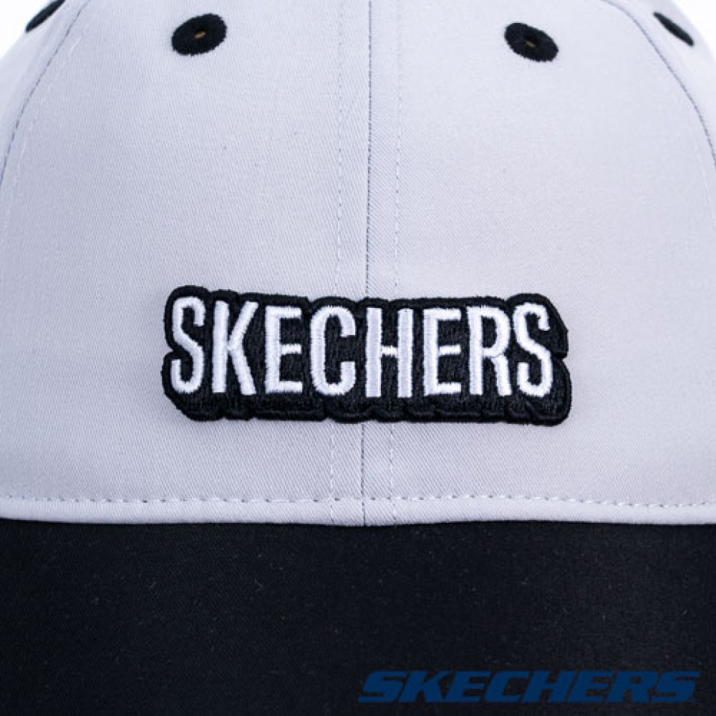 SKECHERS 棒球帽系列,簡約設計,品牌LOGO點綴,可自由調節鬆緊,,讓佩戴更加舒適貼合。 1. 雙色拼接設計,簡約大方,搭配性高。 2. 精美LOGO 刺繡,彰顯品牌個性。 3. 可調式魔鬼氈設計,可依需求自由調整。
