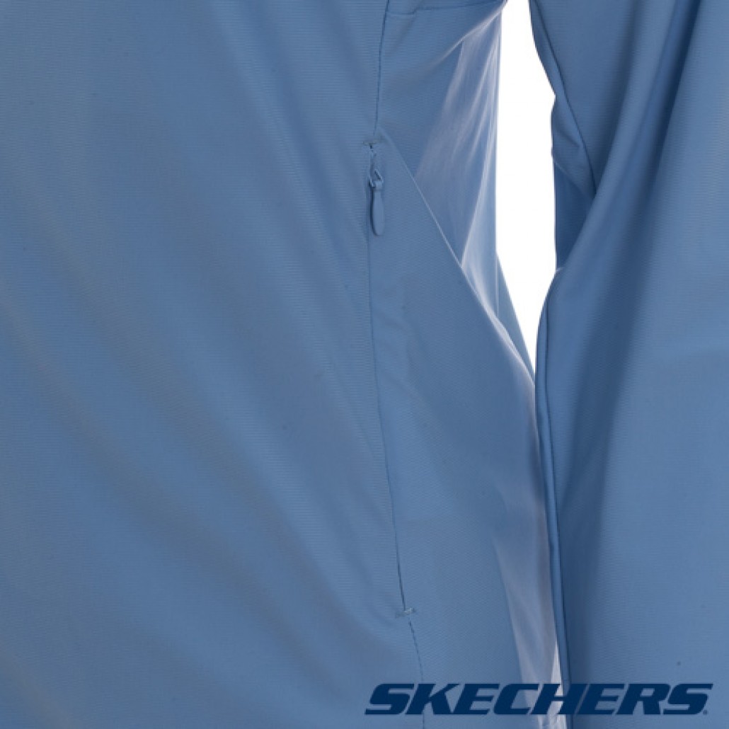 SKECHERS 拉鍊外套, 搭配SKECHWEAVE™ TRICOT舒適伸展彈性布料,讓運動更舒適與時尚。 1.SKECHWEAVE™ TRICOT舒適伸展彈性布料,具涼感和防曬係數UPF 40+ 功能。 2.兩側拉鏈口袋,安全收納物品。 3.修身版型,多裁片剪接設計,增加活動靈活性。