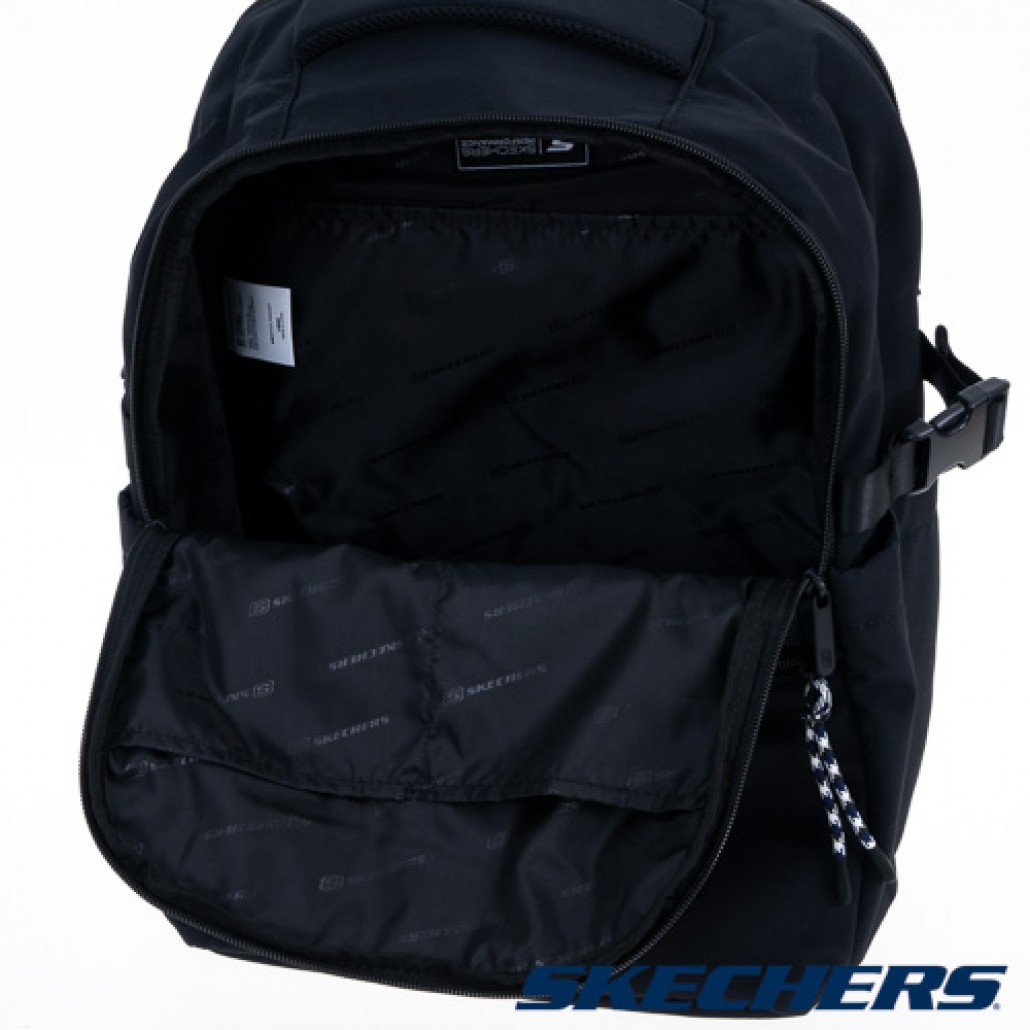 SKECHERS後背包,主隔層雙拉鍊頭設計,收納空間充足,適合日常休閒使用。 1. 雙拉鍊頭設計,大容量收納空間。 2. 多功能隔層收納空間,袋前有一個拉鏈口袋以及兩側收納袋,可以將物品分門別類放置,方便拿取。 3. 側邊調節扣可依收納物品的容量調節寬度。 4. IPAD/筆電專屬保護隔層。 5. 避震背墊,舒適透氣。可調整襯墊背帶,將重量均勻分布肩頸跟背部。