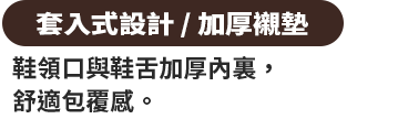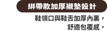 鞋領口與鞋舌加厚內裏,舒適包覆感。
