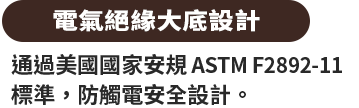 通過美國國家安規 ASTM F2892-11 標準,防止觸電安全設計。