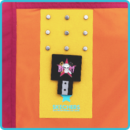 1. 以佛朗基改造人的造型為整體顏色搭配,左胸前的黃色魔鬼氈裁片上特殊的鉚釘設計,可利用佛朗基的海賊旗幟,及草帽海賊團成員剪影的可拆卸式配件,自由於胸前與手臂變換位置,