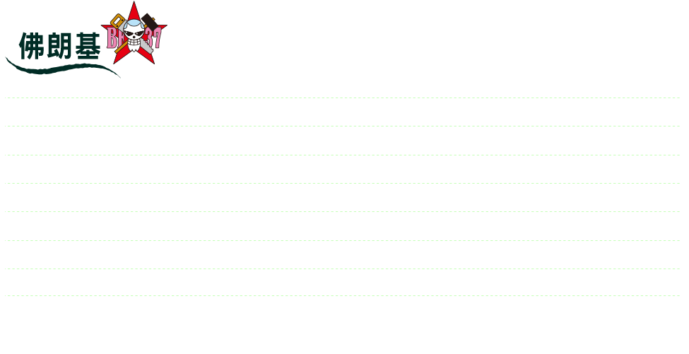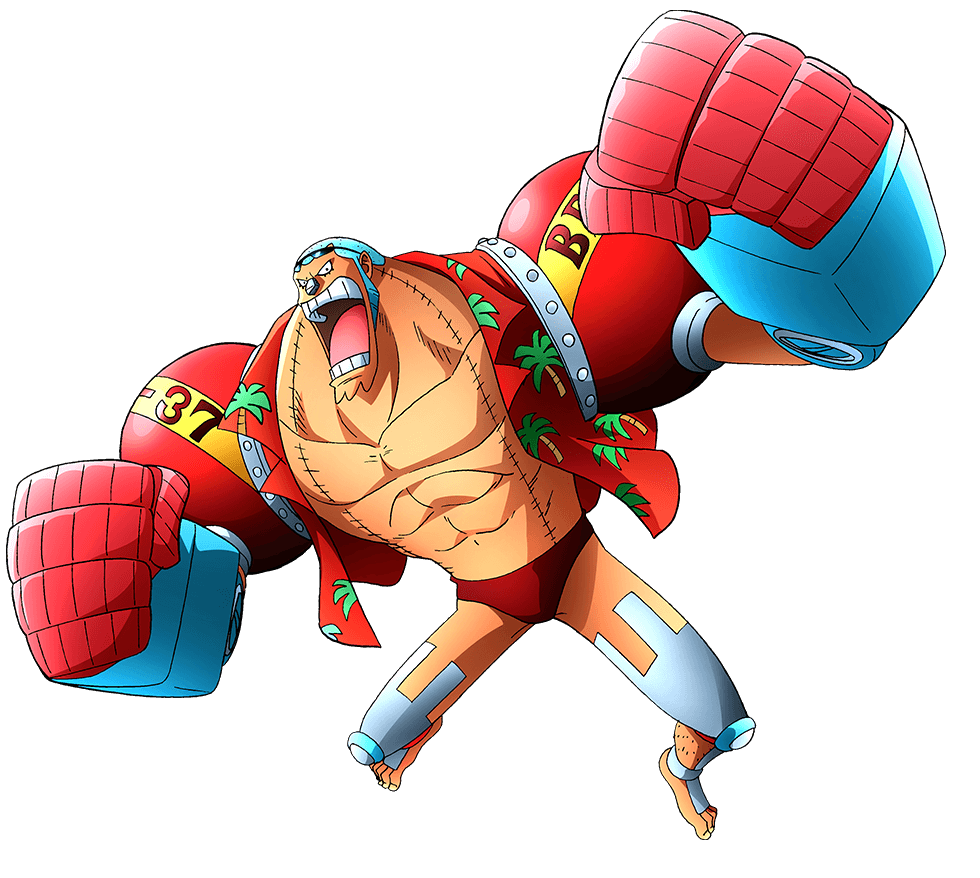 魯夫的第七位夥伴,草帽海賊團的船匠。他是一名改造人,全身上下充滿各種機械裝置和武器,千陽號即是佛朗基製造的夢想之船。 設計師以佛朗基的土耳其藍髮色、機械手臂為構想,結合改照人身上的機械裝置跟更是立體的呈現出「佛朗基戰鬥37號」的紅色圓球狀肩膀,黃色鞋墊印上SKECHERS 與 ONE PIECE 聯名 LOGO,讓你踏出的每一步,都能徹底釋放出海賊的氣勢與態度!