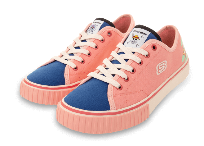 SKECHERS 源自美國南加州的俚語,意思是「坐不住的年輕人」,代表著求新求變,勇於追求自我的精神,就像是航海王的魯夫與他的夥伴們,