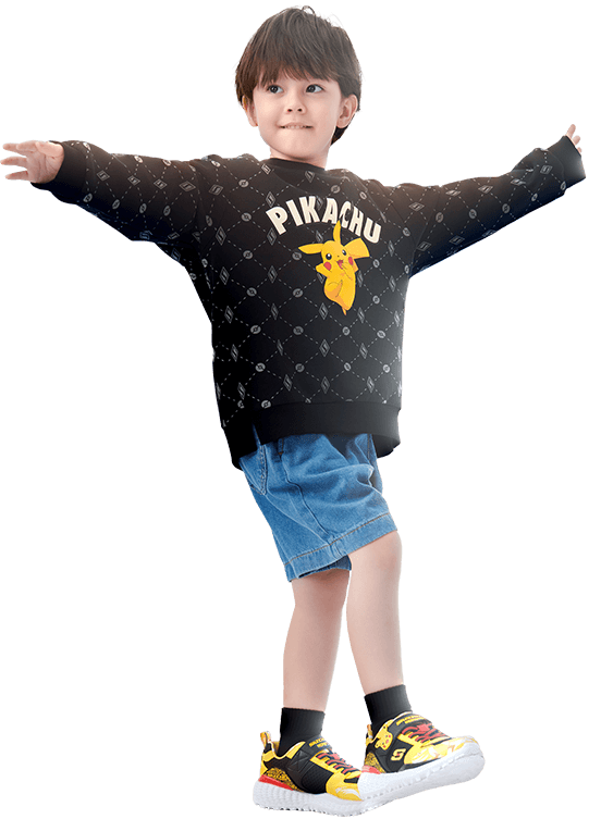 SWEETHEART LIGHTS 兒童燈鞋 皮卡丘款穿搭頁面 穿上 SWEETHEART LIGHTS 皮卡丘兒童燈鞋款,踏上尋寶之旅,創造旅行的驚奇與樂趣,每一個步伐都如閃電般炫目迷人。