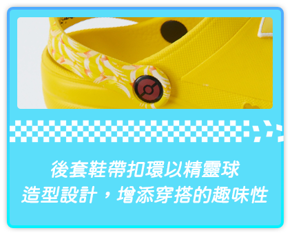 MONSTER 皮卡丘童鞋款可愛穿搭 穿上皮卡丘款踏上尋寶之旅,創造旅行的驚奇與樂趣,每一個步伐都如閃電般耀眼動人。