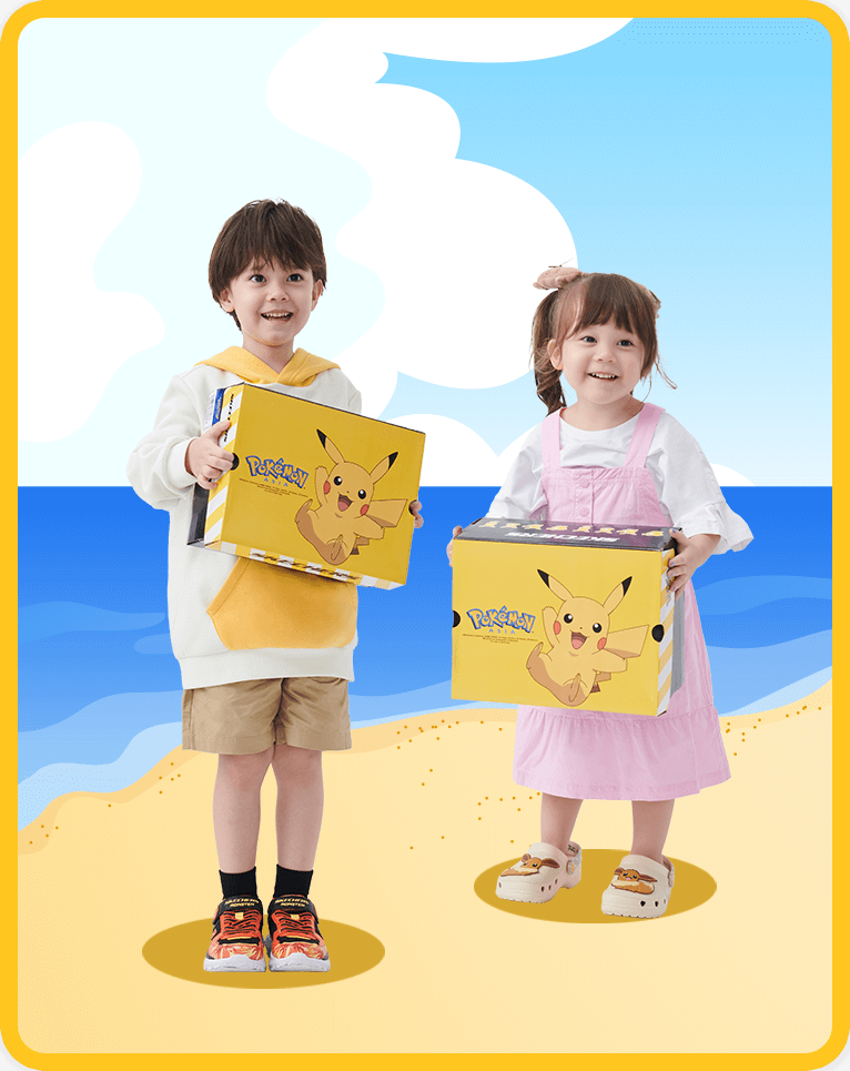 SWEETHEART 寶可夢兒童水鞋 穿上 SWEETHEART 寶可夢兒童水鞋,和皮卡丘、 伊布、胖丁一起到海邊玩耍,在沁涼的海水裡消暑;在沙灘做個日光浴;或者和夥伴一起堆砌沙灘碉堡,創造屬於你們的夏日回憶。
