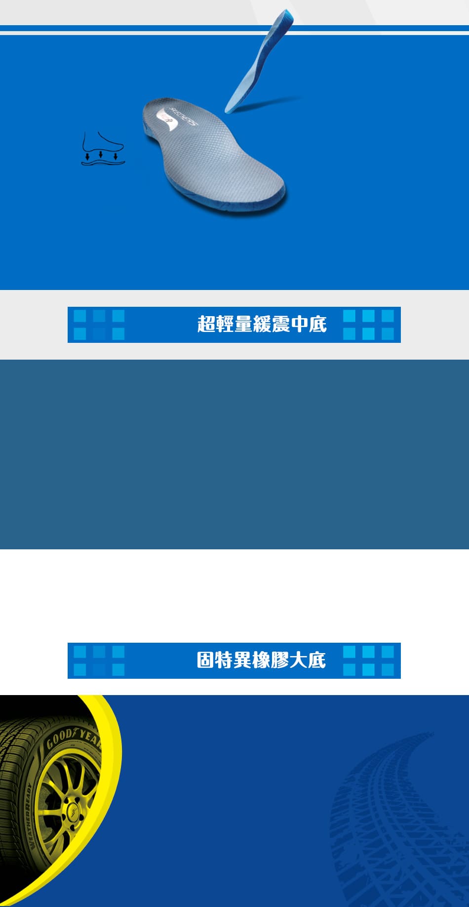 大底使用擁有 123年歷史GOODYEAR® 固特異橡膠,耐磨止滑 ,提供超乎想像的耐用性、穩定性、和抓地力。