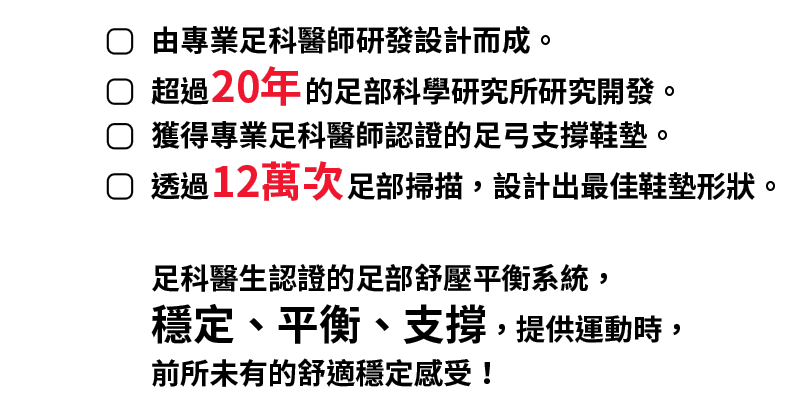 足科醫生認證的足部舒壓平衡系統,穩定、平衡、支撐,提供運動時,前所未有的舒適穩定感受!