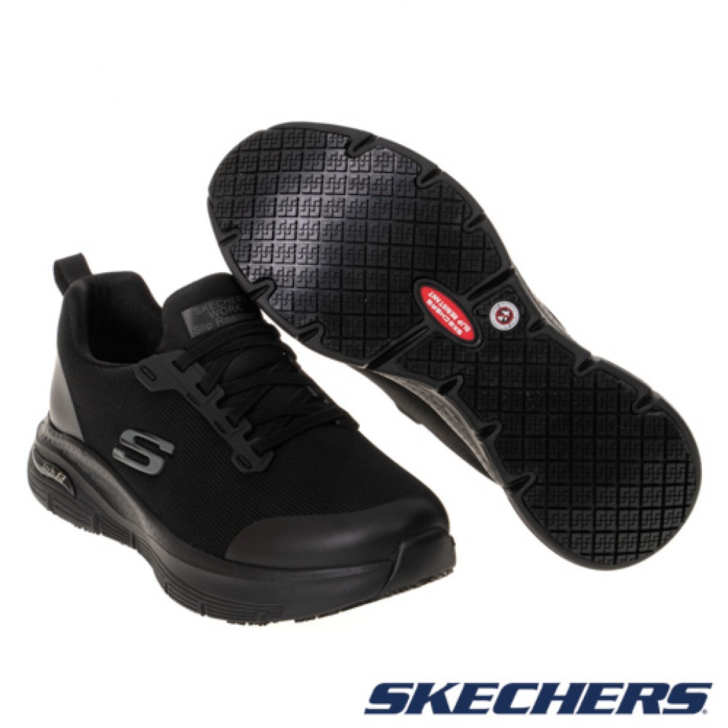 SKECHERS 工作鞋 ARCH FIT系列,配備 SKECHERS 專利 ARCH FIT®動態型足弓適應鞋墊,足弓支撐效果由專業醫師認證,為您提供整天工作站立行走所需要的支撐和舒適度。