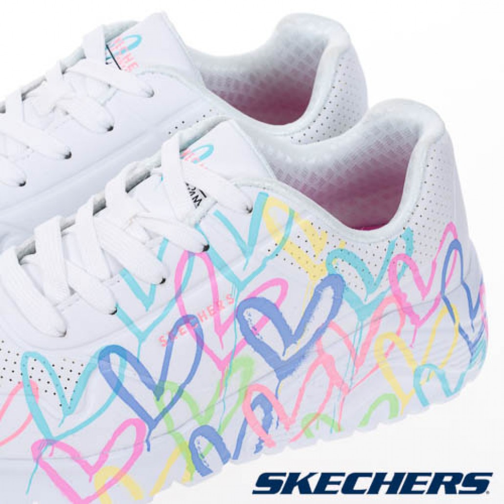 UNO LITE 系列,深受年輕人喜愛的國際知名街頭藝術家 James Goldcrown,因其經典代表作彩色愛心塗鴉 Lovewall 而聞名享譽全世界。這次在 Skechers X JGoldcrown 合作中將其標誌性的#Lovewall心形設計帶入鞋款,推出色彩繽紛、個性前衛的聯名鞋款。