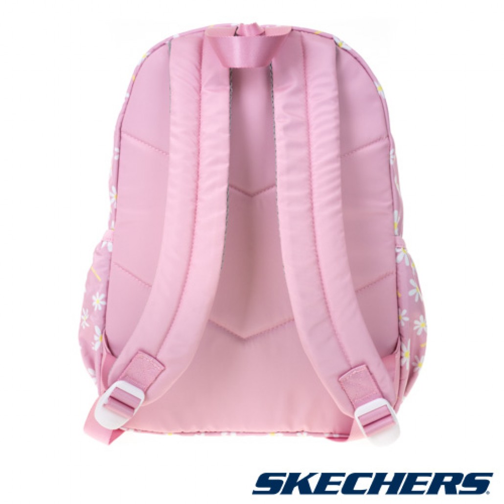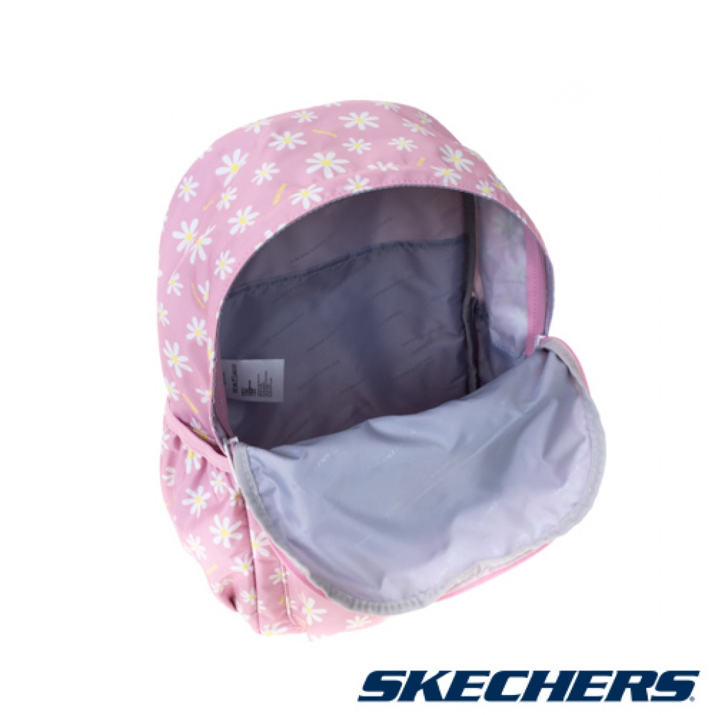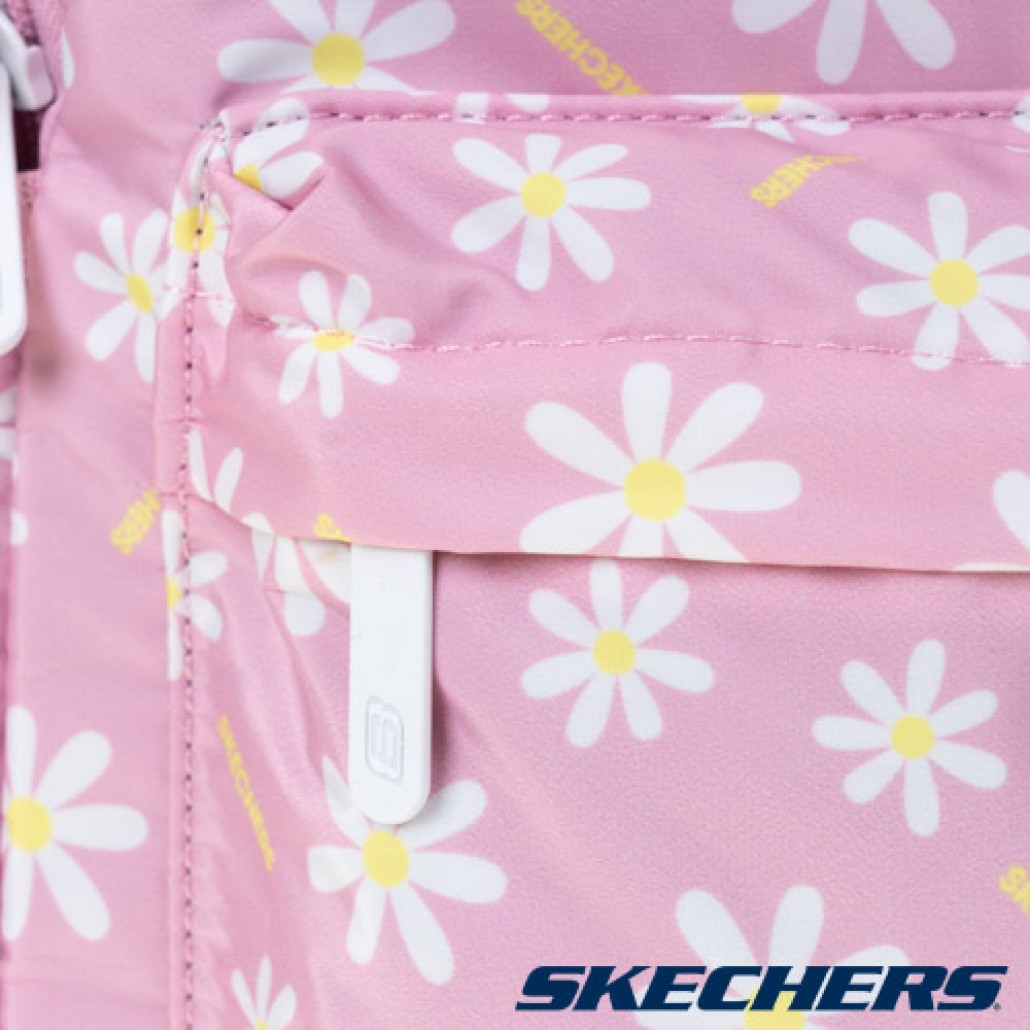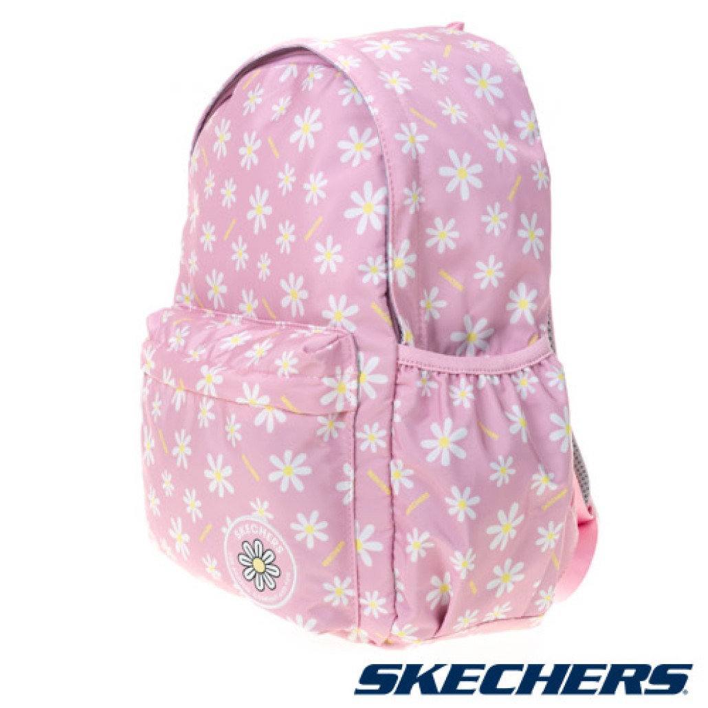 SKECHERS後背包,清新花樣小雛橘印花,輕巧背負,是日常休閒必備單品。 1.大隔層雙拉鍊式收納口袋。 2.内外皆有小隔層,兩側口袋,方便放隨身物品。 3.清新花樣小雛橘印花,亮眼有型。 4.可調整式舒適肩背,依照個人背負舒適度做調整。