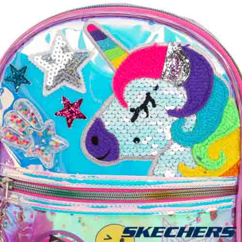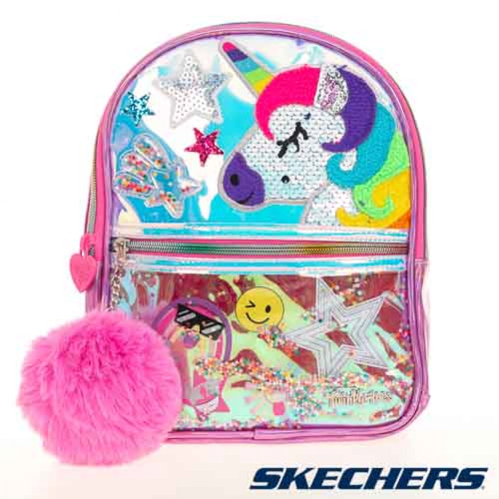 SKECHERS 童後背包,五彩獨角獸配毛絨設計,炫彩可翻面亮片,吸睛亮眼,日常休閒必備單品。 1. 可翻面彩虹亮片,十足吸睛。 2. 絨毛獨角獸主題設計,俏皮可愛。 3. 前袋拉鍊頭搭配彩色毛絨球,超萌可愛。 4. 可調整式彩色肩背,依照個人需求調整長度。